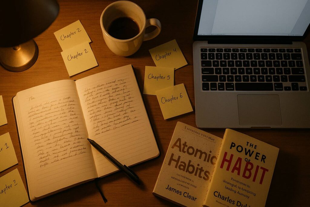 Dengan Atomic Habits, Clear akan suruhmu: “Tulis 200 kata per hari, jam 7 pagi, di kafe favorit, sambil minum latte”—memanfaatkan implementation intention dan habit stacking. Fokusnya: jangan ganggu proses. Asalkan 200 kata terpenuhi, menang. Setahun kamu punya 73.000 kata, sebuah novel.